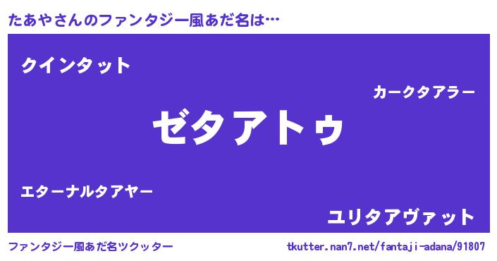 | ヒーロー風カッコイイあだ名 | 『最強戦士タアヤ』『慈愛の使者たあや』 |