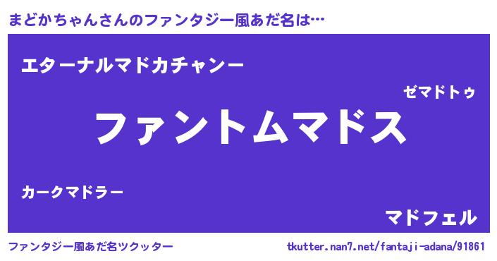 | ヒーロー風カッコイイあだ名 | 『幻影騎士マド』『スーパーマドカチャン』 |