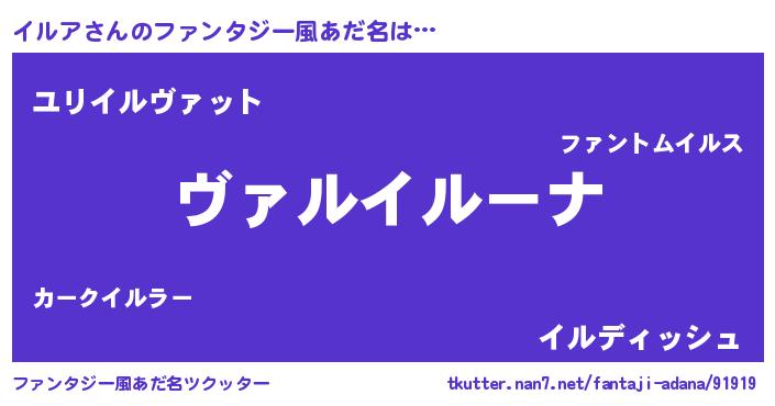 | 意味不明あだ名 | 『住所不定無職イルア(98歳)』 |