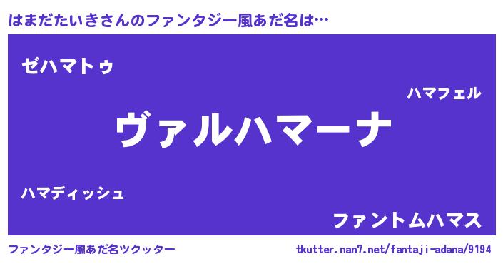 | ヒーロー風カッコイイあだ名 | 『仮面ハマダー』『銀牙騎士ハマ』 |