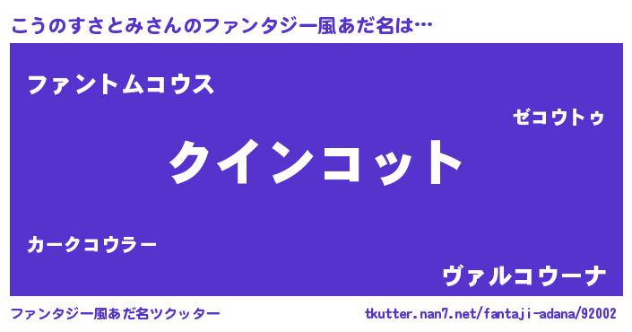| 男性向けラノベタイトル風あだ名 | 『おまえをオタクにしてやるから、俺をこうのすさとみにしてくれ! 』 |