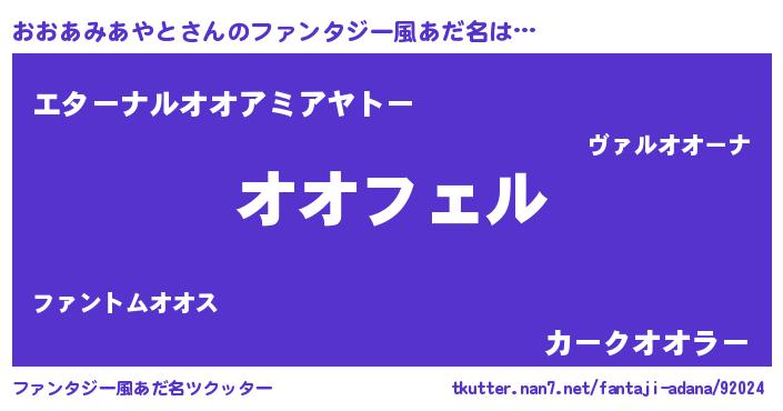 | ヒーロー風カッコイイあだ名 | 『スーパーオオアミアヤト』 |