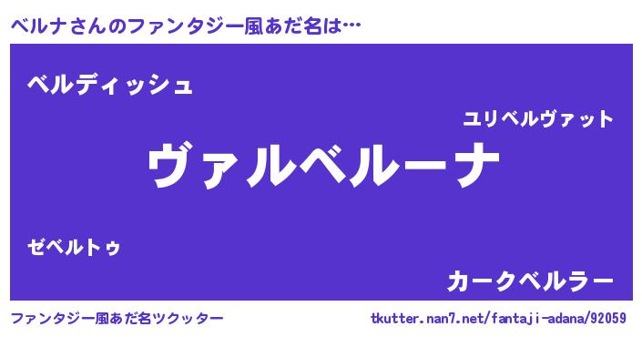 | 男性向けラノベタイトル風あだ名 | 『この素晴らしい世界にベルナを!』 |