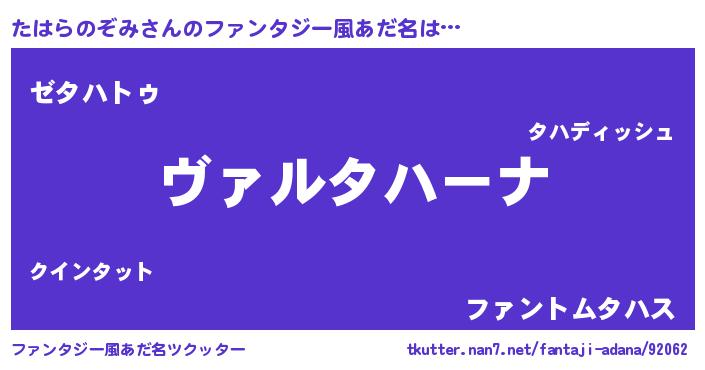 | 男性向けラノベタイトル風あだ名 | 『この素晴らしい世界にたはらのぞみを!』 |