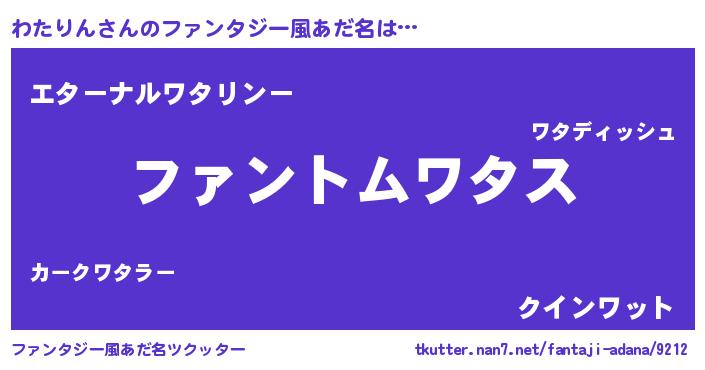 | 男性向けラノベタイトル風あだ名 | 『ダンジョンにわたりんを求めるのは間違っているだろうか』 |