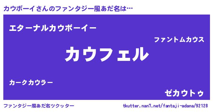 | 男性向けラノベタイトル風あだ名 | 『カウボーイアートオンライン』 |