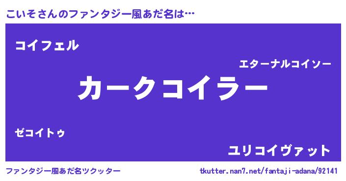 | 欧米人風あだ名 | 『こいそ・ステッグマイヤー』 |