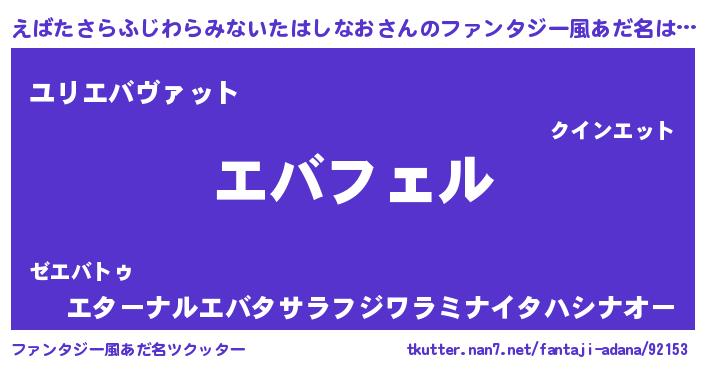 | 男性向けラノベタイトル風あだ名 | 『エバタサラフジワラミナイタハシナオアートオンライン』 |