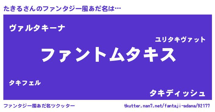 | ポケモン風あだ名 | 『ヒタキル』『ターキイ』『ゼニタキ』 |