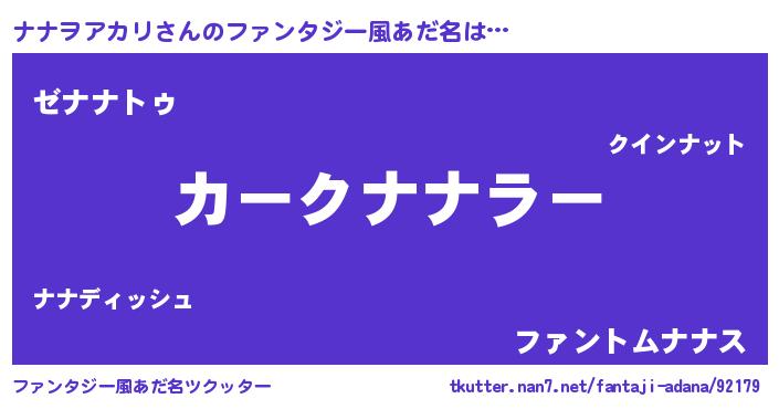 | 意味不明あだ名 | 『自称ナナヲアカリ』 |