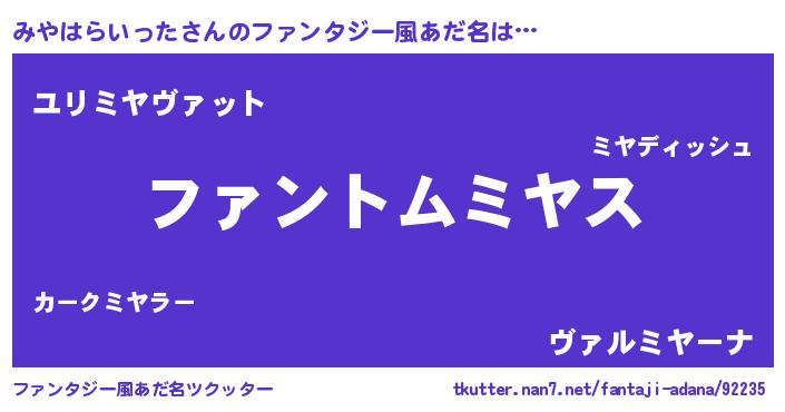 | ヘコむあだ名 | 『みやお』『みやはらいった(爆)』 |