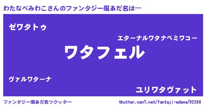 | 胡散臭い通販商品みたいなあだ名 | 『必ず成功する霊験あらたかなお札…その名も「わたなべみわこ」』 |