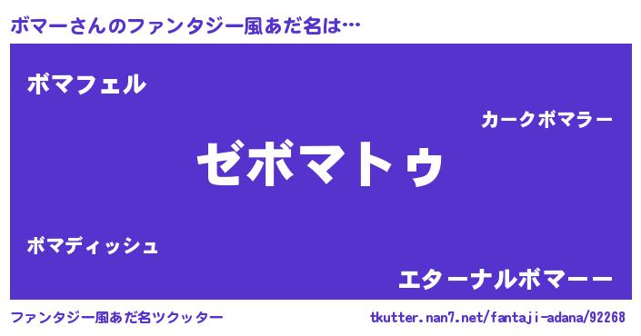 | 女子向けラノベタイトル風あだ名 | 『ボマーアンティーク』 |