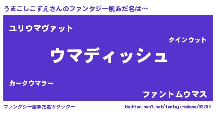 | ヒーロー風カッコイイあだ名 | 『ネオウマコシコズエ』『銀牙騎士ウマ』 |