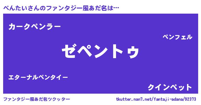 | 女子向けラノベタイトル風あだ名 | 『闇のぺんたい』『ぺんたいの雑貨屋さん』 |