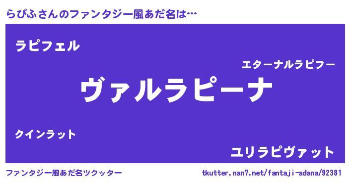 | 意味不明あだ名 | 『住所不定無職らぴふ(13歳)』 |