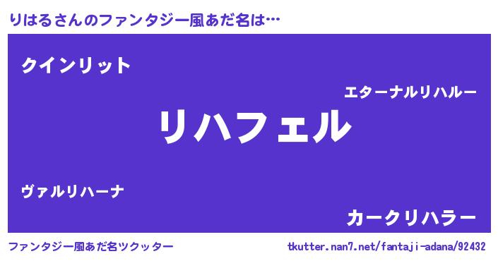 | 胡散臭い通販商品みたいなあだ名 | 『億万長者になれる霊験あらたかなお札…その名も「りはる」』 |