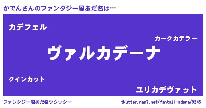 | 男性向けラノベタイトル風あだ名 | 『魔弾の王とかでん』『かでんの憂鬱』 |