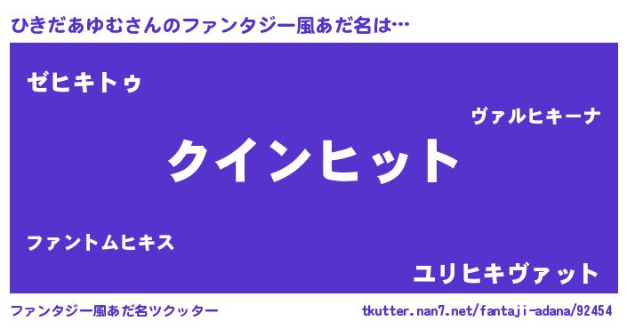| 男性向けラノベタイトル風あだ名 | 『おまえをオタクにしてやるから、俺をひきだあゆむにしてくれ! 』 |