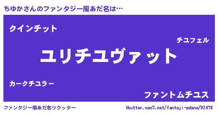 | ヒーロー風カッコイイあだ名 | 『慈愛の使者ちゆか』『天弓騎士チユ』 |