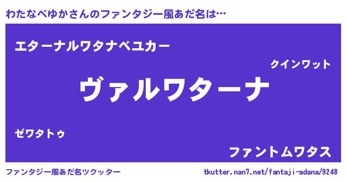 | 男性向けラノベタイトル風あだ名 | 『この素晴らしい世界にわたなべゆかを!』 |