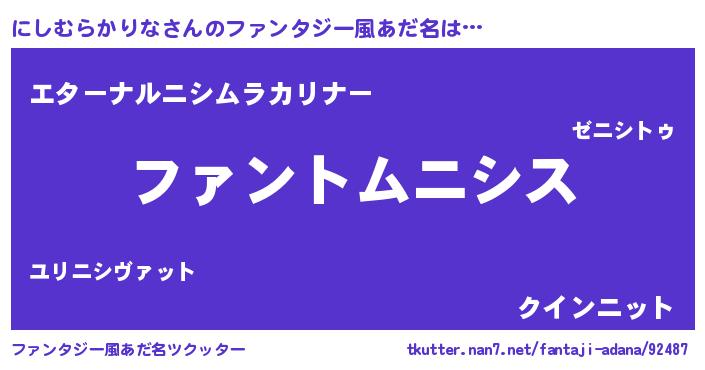| 男性向けラノベタイトル風あだ名 | 『にしむらかりなの嫁は女の子じゃないと思った?』 |