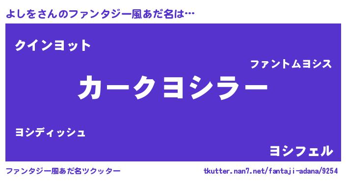 | 欧米人風あだ名 | 『よしを・ステッグマイヤー』 |