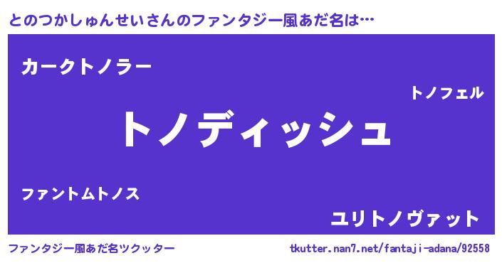 | ヘコむあだ名 | 『とのつかしゅんせい(笑)』『とのにー』 |