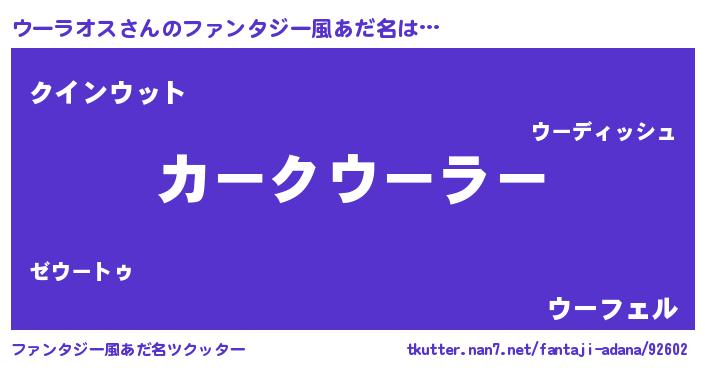 | ヒーロー風カッコイイあだ名 | 『慈愛の使者ウーラオス』『仮面ウーダー』 |