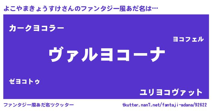 よこやまきょうすけさんのファンタジー風あだ名をツクッター!