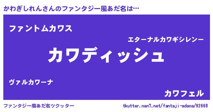 | 意味不明あだ名 | 『永久保存かわぎしれん』 |