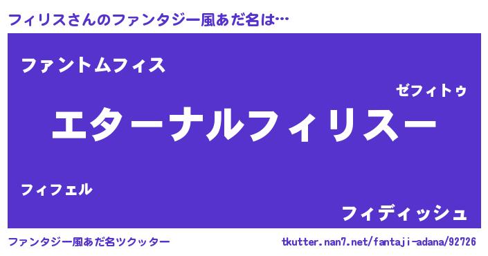 | 男性向けラノベタイトル風あだ名 | 『やはりフィリスの青春ラブコメはまちがっている 』 |