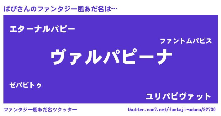 | ヒーロー風カッコイイあだ名 | 『仮面パピダー』『ウルトラぱぴマン』 |