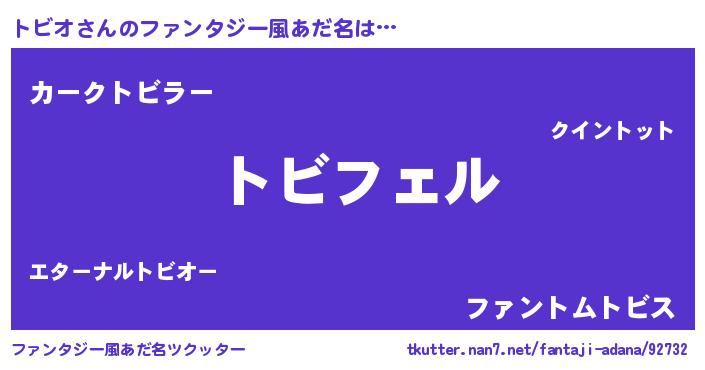 | ヒーロー風カッコイイあだ名 | 『スーパートビオ』『暗黒騎士トビ』 |