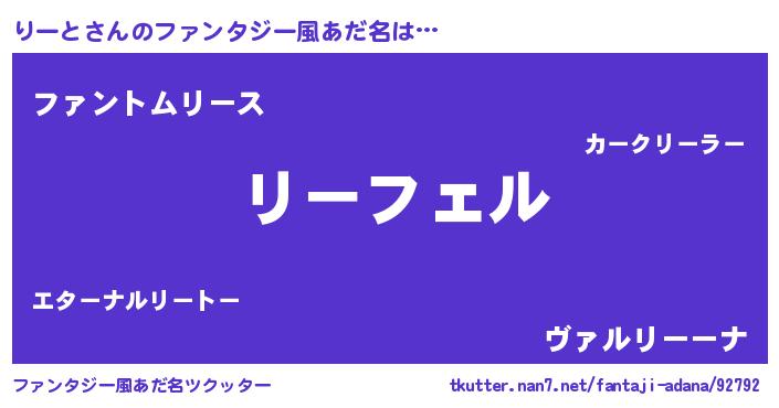 | 男性向けラノベタイトル風あだ名 | 『りーとの憂鬱』『緋弾のリート』 |