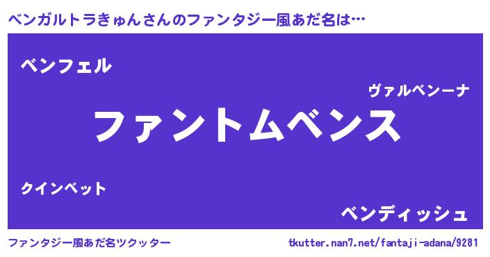 | 男性向けラノベタイトル風あだ名 | 『ベンガルトラきゅんの嫁は女の子じゃないと思った?』 |