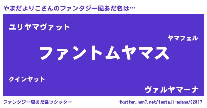 | ポケモン風あだ名 | 『ヒヤマダヨリコ』『ヤマキング』 |