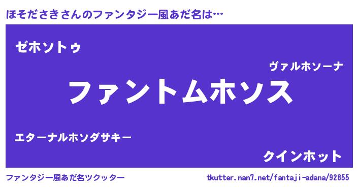 | ヒーロー風カッコイイあだ名 | 『魔戒騎士ホソ』『慈愛の使者ほそださき』 |