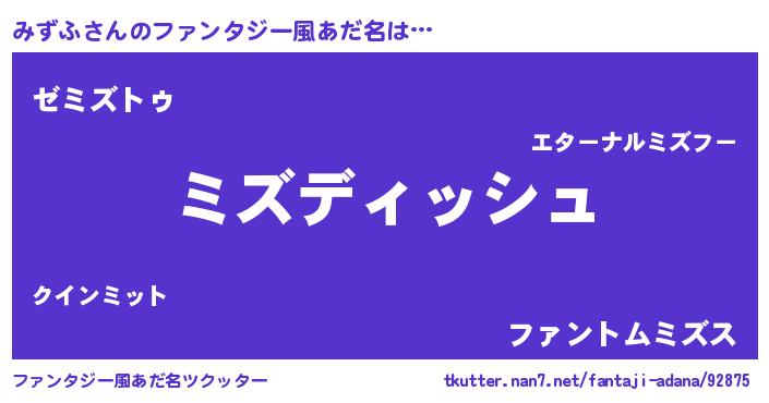 | ヒーロー風カッコイイあだ名 | 『ネオミズフ』『究極戦士ミズフ』 |