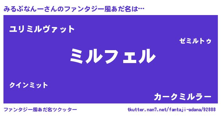 | 男性向けラノベタイトル風あだ名 | 『みるぷなんーの憂鬱』 |
