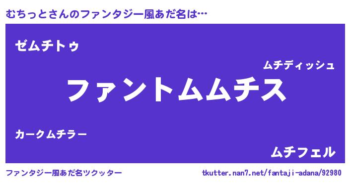 | 自動車の名前っぽいあだ名 | 『ムルトチパン』『レクムス』 |