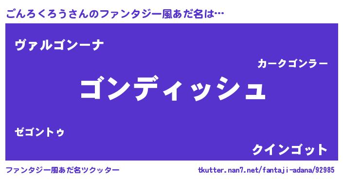 | 意味不明あだ名 | 『永久保存ごんろくろう』 |