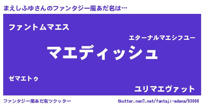 | ポケモン風あだ名 | 『ゼニマエ』『ヒマエシフユ』 |