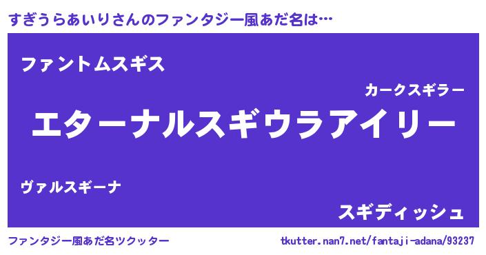 | 意味不明あだ名 | 『すぎうらあいりフォーエバー』 |