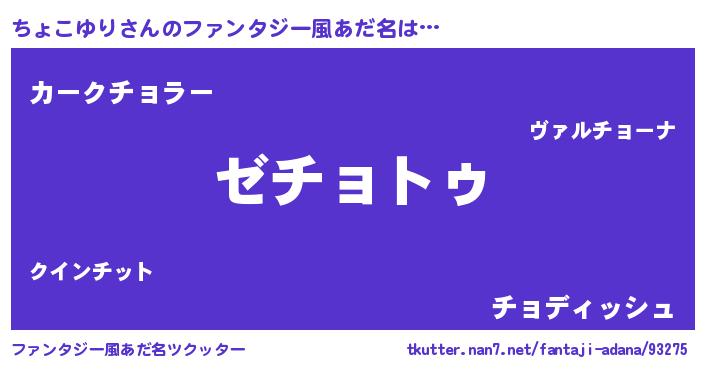 | 伝説のあだ名 | 『古文書に記された暗殺者ちょこゆり』 |