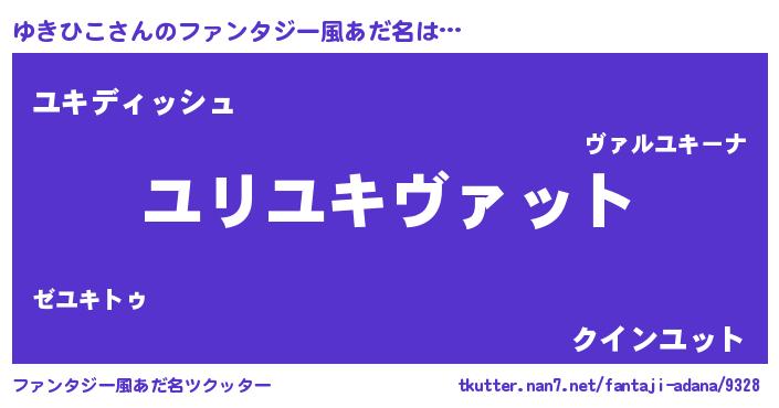 | 男性向けラノベタイトル風あだ名 | 『ゆきひこ~年齢イコール彼女いない歴の魔法使い~』 |