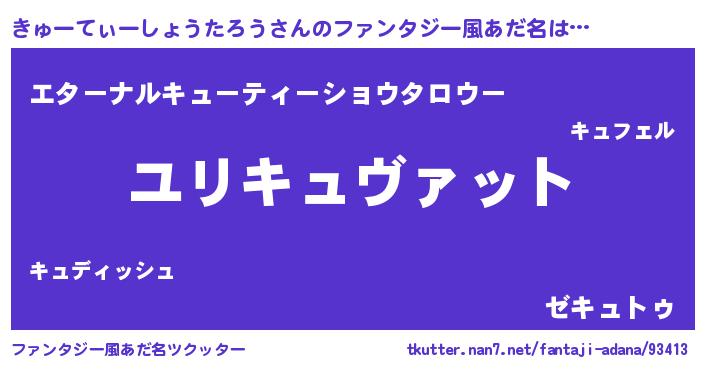 | 女子向けラノベタイトル風あだ名 | 『きゅーてぃーしょうたろうの玉の輿計画!』 |