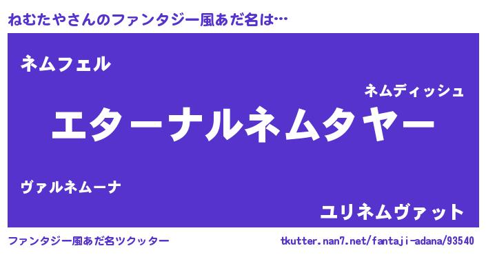 | ポケモン風あだ名 | 『ネムタダネ』『ネムチュウ』 |