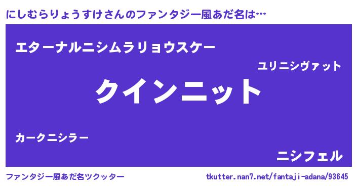 | 男性向けラノベタイトル風あだ名 | 『ノーゲーム・ノーニシムラリョウスケ』 |