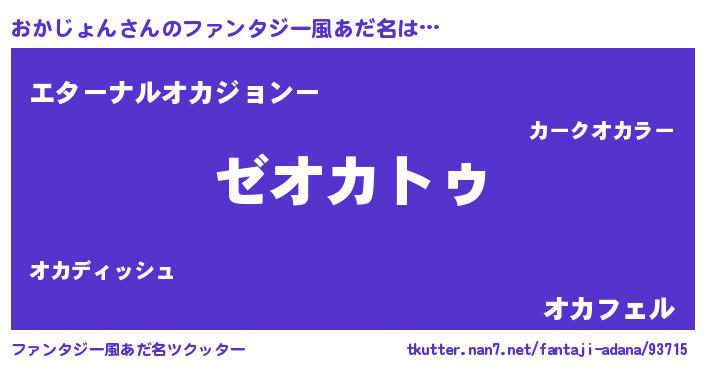 | 男性向けラノベタイトル風あだ名 | 『Re:おかじょんから始める異世界生活』 |